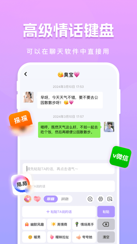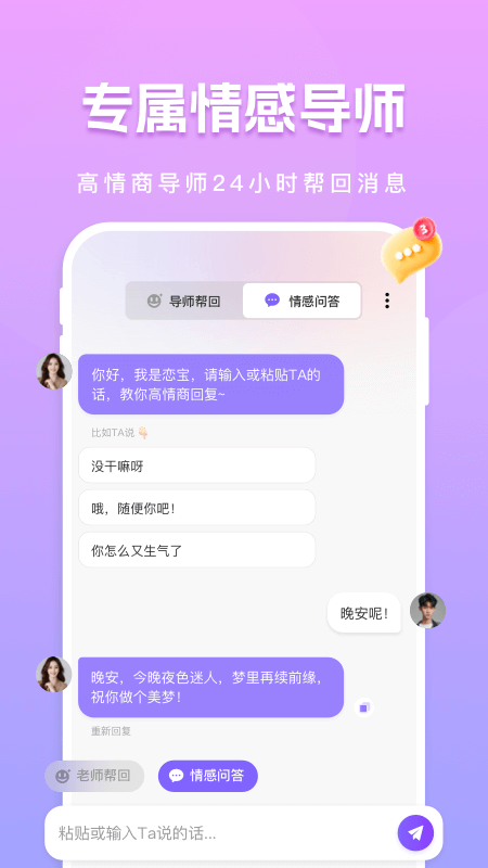 撩人宝典恋爱聊天话术是一款能帮助帮你高情商对话的聊天工具。